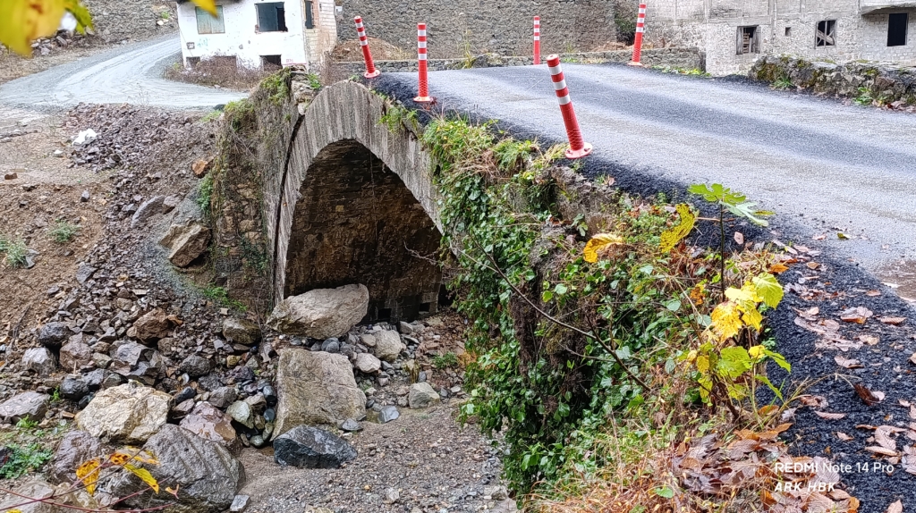 Mahallenin girişinde bulunan tarihî taş köprü ve çevresindeki diğer ahşap yapılar (evler, ambarlar veya müştemilatlar) da aynı tehlikeyi paylaşıyor. Özellikle yola yakın konumda bulunan ve çatısı tamamen yosunlarla kaplanmış, duvarları çürümeye başlamış tek katlı küçük ahşap bir kulübenin görüntüsü, tehlikenin sadece büyük binayla sınırlı olmadığını, çevredeki tarihi dokuyu tehdit ettiğini gözler önüne seriyor.