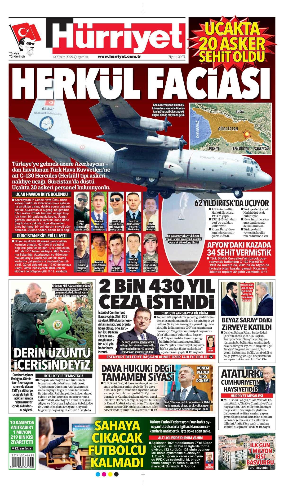Hürriyet Gazetesi 12 Kasım 2025 Günü Gazete Manşetleri