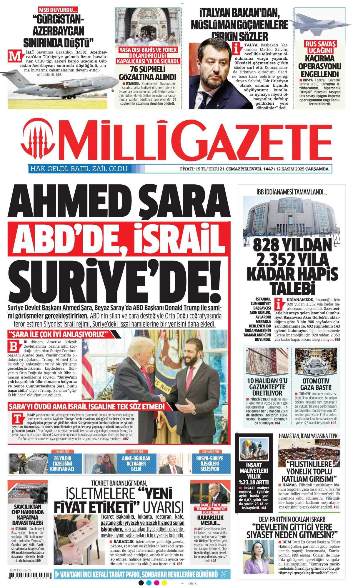 Milli Gazetesi 12 Kasım 2025 Günü Gazete Manşetleri
